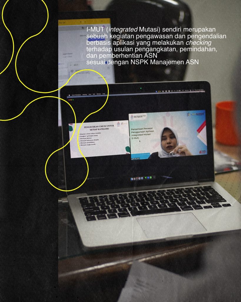 I-MUT (Integrated Mutasi) merupakan aplikasi pengawasan dan pengendalian yang digunakan untuk melakukan pengecekan terhadap usulan pengangkatan, pemindahan, dan pemberhentian ASN. Sistem ini memastikan setiap proses sesuai Norma, Standar, Prosedur, dan Kriteria (NSPK) Manajemen ASN.