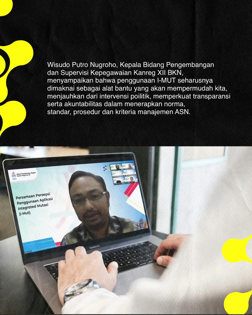 Kanreg XII BKN melaksanakan sosialisasi I-MUT untuk menyamakan persepsi penggunaan layanan mutasi terintegrasi dan memperkuat manajemen ASN di wilayah kerja.