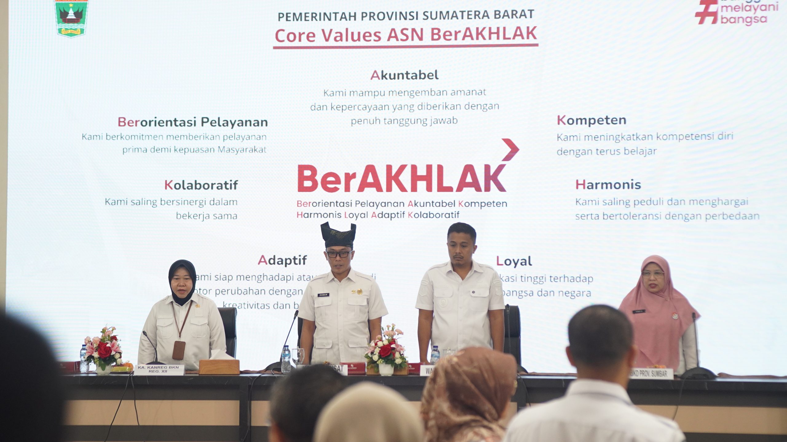 Kegiatan yang mengusung tema “Menuju Pengelolaan Manajemen ASN yang Modern, Efektif, dan Akuntabel” diawali dengan penandatanganan komitmen penerapan manajemen talenta antara wakil gubernur provinsi Sumatera Barat Vasko Ruseimy dengan perwakilan kabupaten/kota se-Sumatera Barat yang juga turut disaksikan oleh Kepala BKN Prof. Zudan Arif Fakrulloh, Kepala Kantor Regional XII BKN Anna Hasnah Hasaruddin, dan Kepala Badan Kepegawaian Daerah (BKD) Provinsi Sumatera Barat, Fitriatri M.