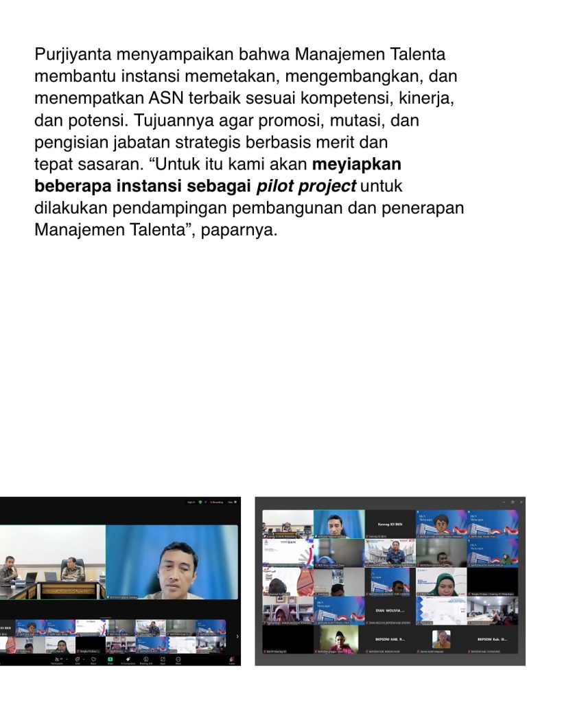 Selain isu penyelesaian tenaga non-ASN, Kanreg XII BKN juga mendorong transformasi jangka panjang melalui penerapan Manajemen Talenta. Purjiyanta menjelaskan bahwa instrumen ini krusial untuk memetakan, mengembangkan, dan menempatkan ASN terbaik sesuai dengan kompetensi, kinerja, dan potensinya.